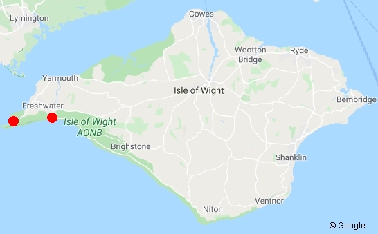 Two miles further west you will find the red sandstone cliffs of Compton Bay. A beautiful beach, it is best known for the remains of the Island’s first residents, namely the dinosaurs (along with its popularity for surfing).